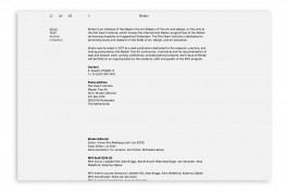 Binder is an online publication and serves as the digital archive of activities, experiences, and projects that take place over the course of the 2-year Master Fine Art program at the Piet Zwart Institute. Loosely covering an academic year, each issue contains an editorial note, features and articles devoted to research, writing, exhibitions and educational projects.