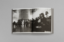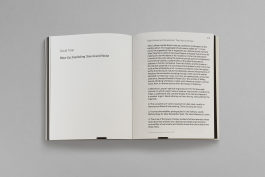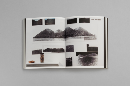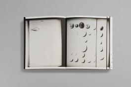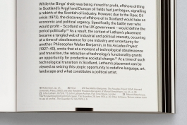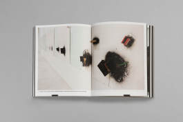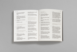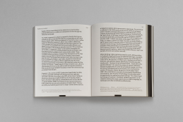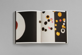 Alongside an impressive body of work, it brings together archival material, thematic essays, and visual contributions of a much younger generation of artists and practitioners he had influenced. Like the exhibition itself, the book offers an immediate encounter with the artist. The hardback cover is trimmed on all three sides to expose the raw cardboard core, and the fore and tail edges reveal a graphic score of printed lines and blocks set into the bleed of each page. They create a system that allows navigating through the various materials, but also relates back to Latham’s idea of time.