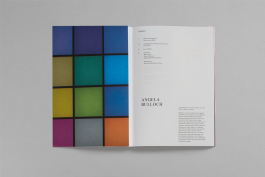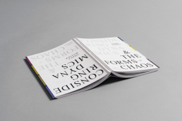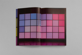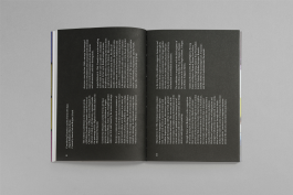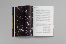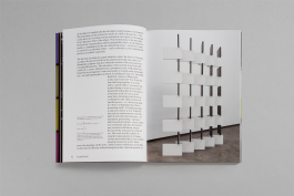 Likewise, the publication takes the form of two separate but related exhibition catalogues, each leading towards the book’s center. Front- and backmatter of the catalogue, usually positioned in the front and back respectively, are inserted at the very heart of the publication and in different orientation, challenging the representations of order, disorder and information, and their homogeneity. Textual and visual registers are organically woven into each other and are structured by the use of various textured papers and printing.