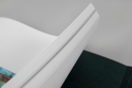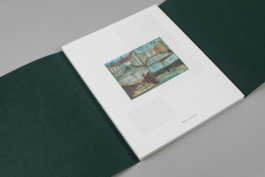 It’s like leafing through an old photo album. What you see is distant in terms of time, yet it’s familiar, like cherished memories. This idea has been reinforced by the binding featuring a fore-edge flap that has to be opened before the content unfolds. In earlier centuries the fore-edge flap was a typical element providing protection to the book when closed. The backcover with its die-cut detail, however, reveals one of Welten’s collages.