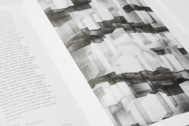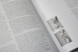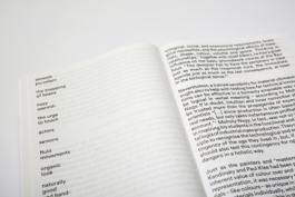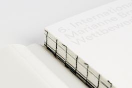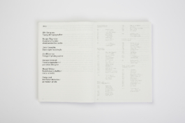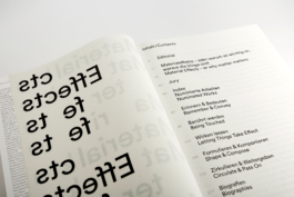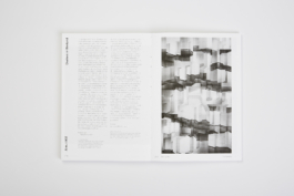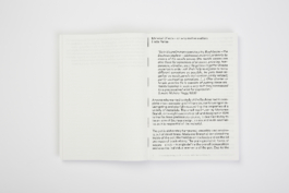 Our commission began with the design of the exhibition graphics. We developed an identity based on repetition, wordplay, and transparency using translucent paper for poster, flyer as well as parts of the catalogue. Shimmering through on their respective pages, it creates a density of text (and image) which blurs the idea of front and back. The cover features a dust jacket, folded in the American style and wrapped around a sewn-in softcover of 4 pages on either side. An exposed binding reveals the pattern and cross-section of the threads on the spine.