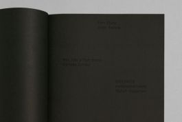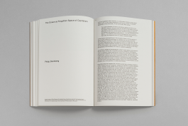 The design of both, the exhibition graphics and the catalogue cover, features corrugated rectangular shapes echoing Sekula’s recurring motif of cargo-containers, which has been the central subject he pursued over the last three decades of his life. The notion of flow and constant traffic is not only reflected in the alternation between textual and visual registers but also in the underlying image grid and the typography of the chapter pages.