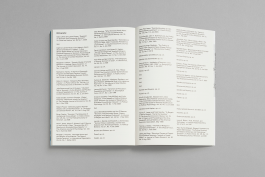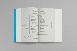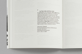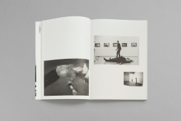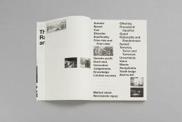 The book is broken into three work sections: a collection of charts and models fabricated by social science to make sense of terrorism; a chronology around the fictional orchestra in Orson Welles’ radio play The War of the Worlds from 1938; as well as found images of artists’ works reflecting on the question what can an image do and what is the relationship between words and images. Each of the sections is designed with their own aesthetic to feel like a collection of found materials which is further emphasized by the roughly trimmed fore edge.