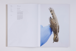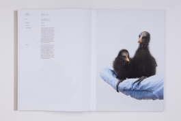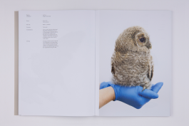 The clinical approach of the photography returns in the overall design of the books as well as in the descriptions which briefly document the species of the bird that was brought in, the time of the year, the nature of the injuries, further treatment and the outcome in the sanctuary. The spare typography is set in Caponi and gives the texts a warm and accommodating tone. The book is swiss-style bound with a glued-off spine to ensure it opens out flat. With its extra crease lines the cover draws inspiration from patient medical record files. It comes with 5 different cover images of Gesink’s feathered patients emphasizing each one’s particular fragility and strength.